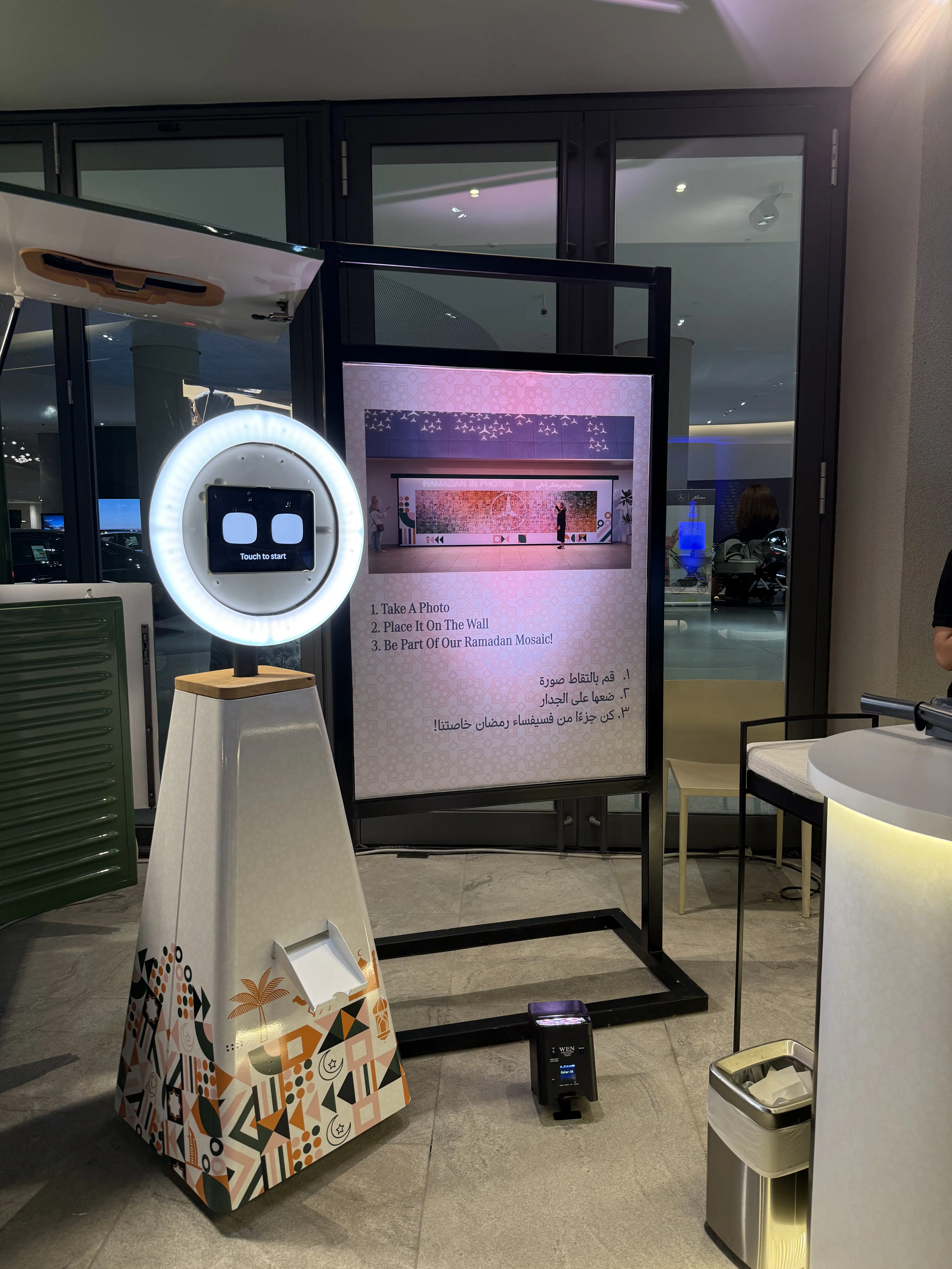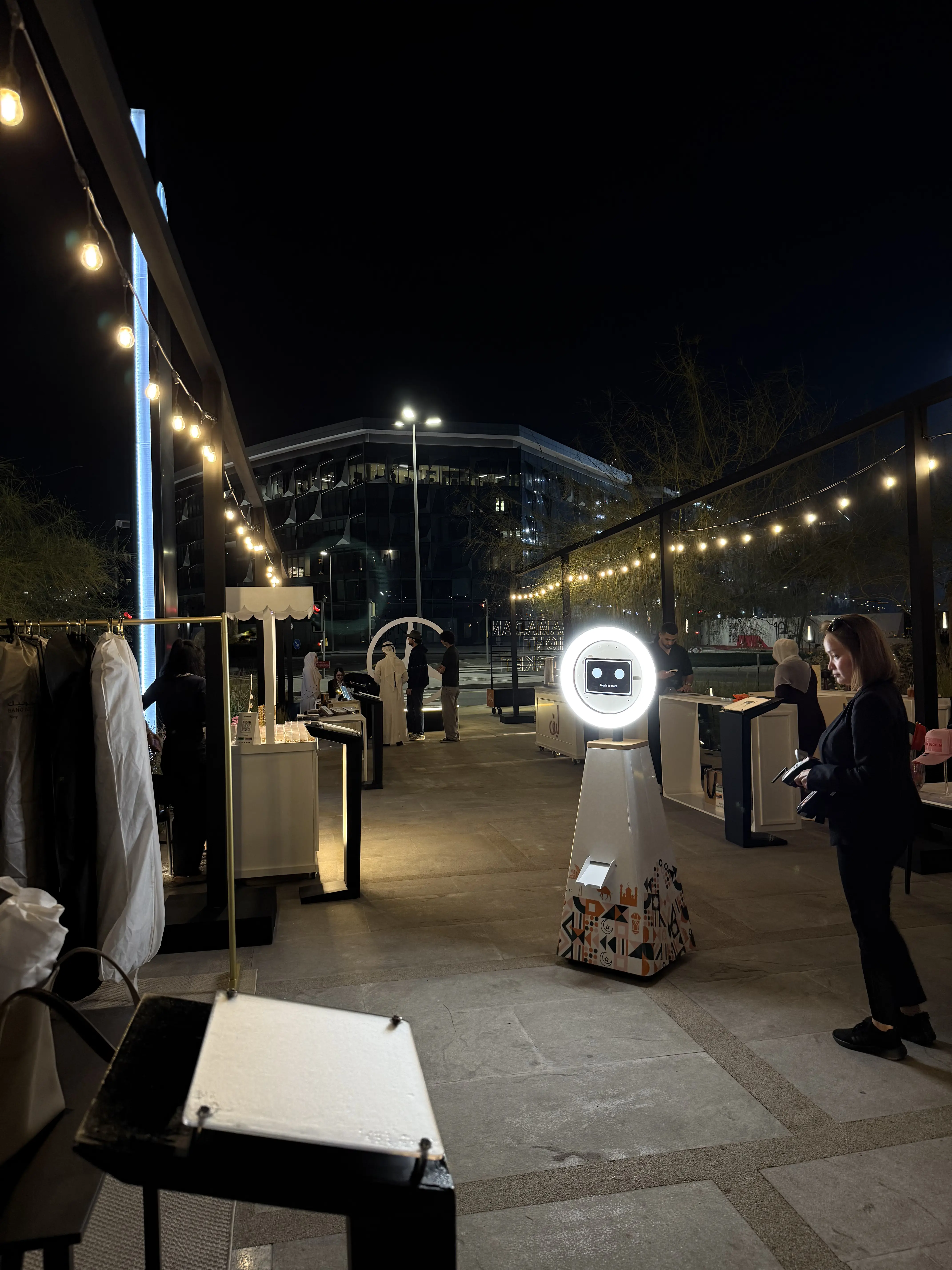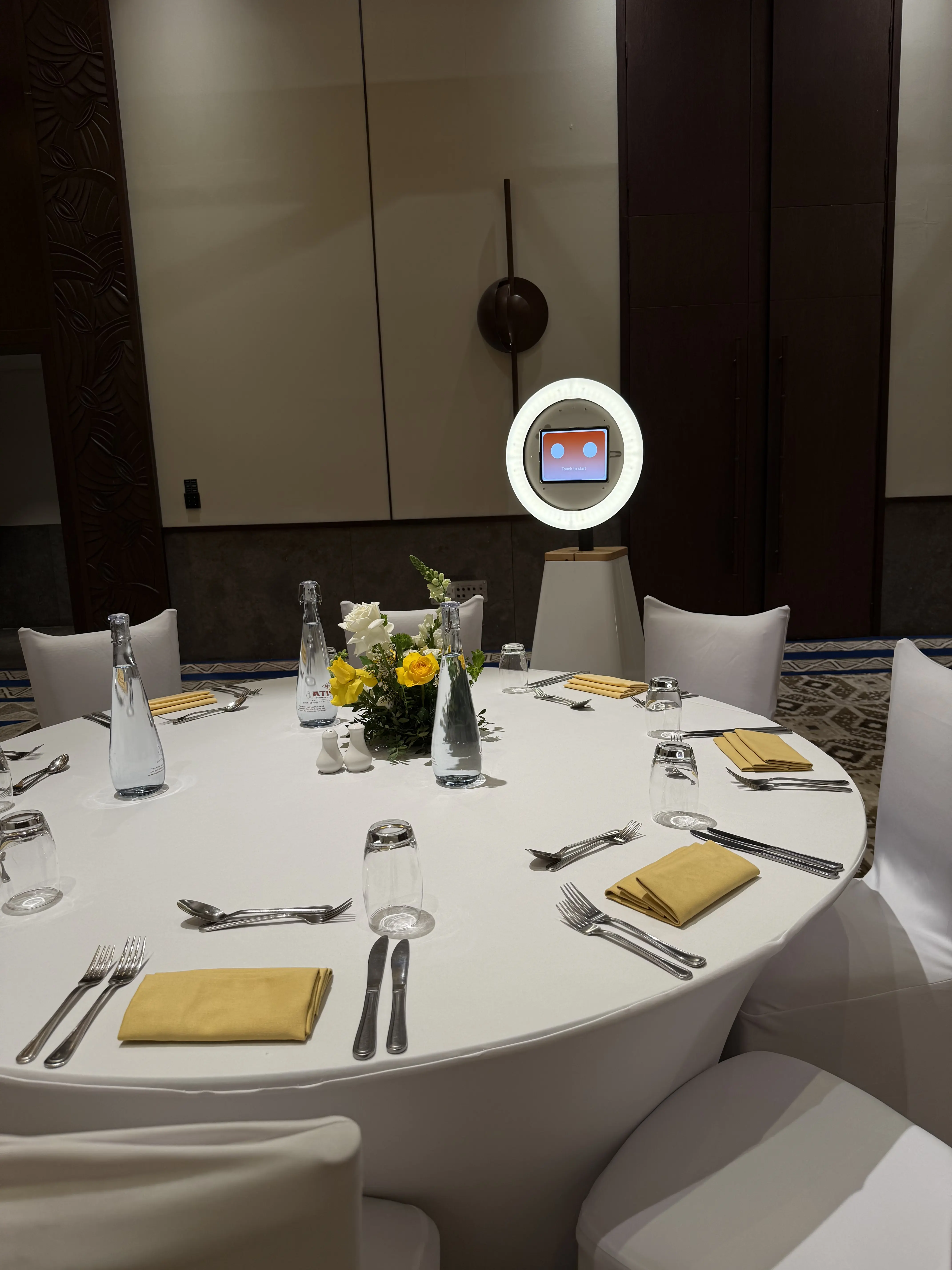 An AI roaming photo bot moves around the event capturing candid guest photos instead of staying in one fixed location.